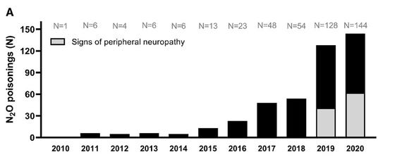 Meer details over het onderzoek zijn na te lezen in het artikel (open access): Alarming increase in poisonings from recreational nitrous oxide use after a change in EU-legislation, inquiries to the Dutch Poisons Information Center. (https://doi.org/10.1016/j.drugpo.2021.103519).
