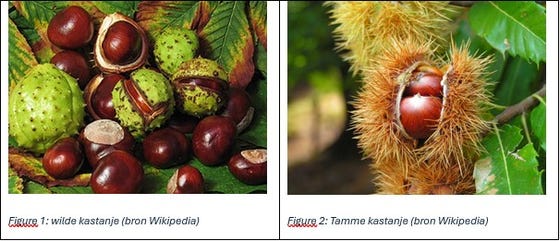 In tegenstelling tot de tamme kastanje, is de wilde kastanje niet eetbaar en smaakt bitter. De tamme kastanje heeft een stekelige bolster met lange, fijne stekels. De wilde kastanje daarentegen heeft een groene, stekelige doosvrucht (bolster) met een diameter van circa 6 cm diameter. De bolster bevat 1-3 glanzende, bruine zaden (2-4 cm), met een matte, ronde vlek (kastanjes). De tamme kastanje is eetbaar, maar inname van wilde kastanjes kan leiden tot gezondheidseffecten. Inname van een kleine hoeveelheid kan al tot maagdarmklachten leiden. Bij inname van grote hoeveelheden is daarbij kans op bloedingen in het maagdarmkanaal, vocht- en elektrolytenverstoringen. Bij kinderen is tevens koorts en hoofdpijn beschreven. Inname van grote hoeveelheden kastanjes komt echter zelden voor, vanwege de bittere smaak van kastanjes.